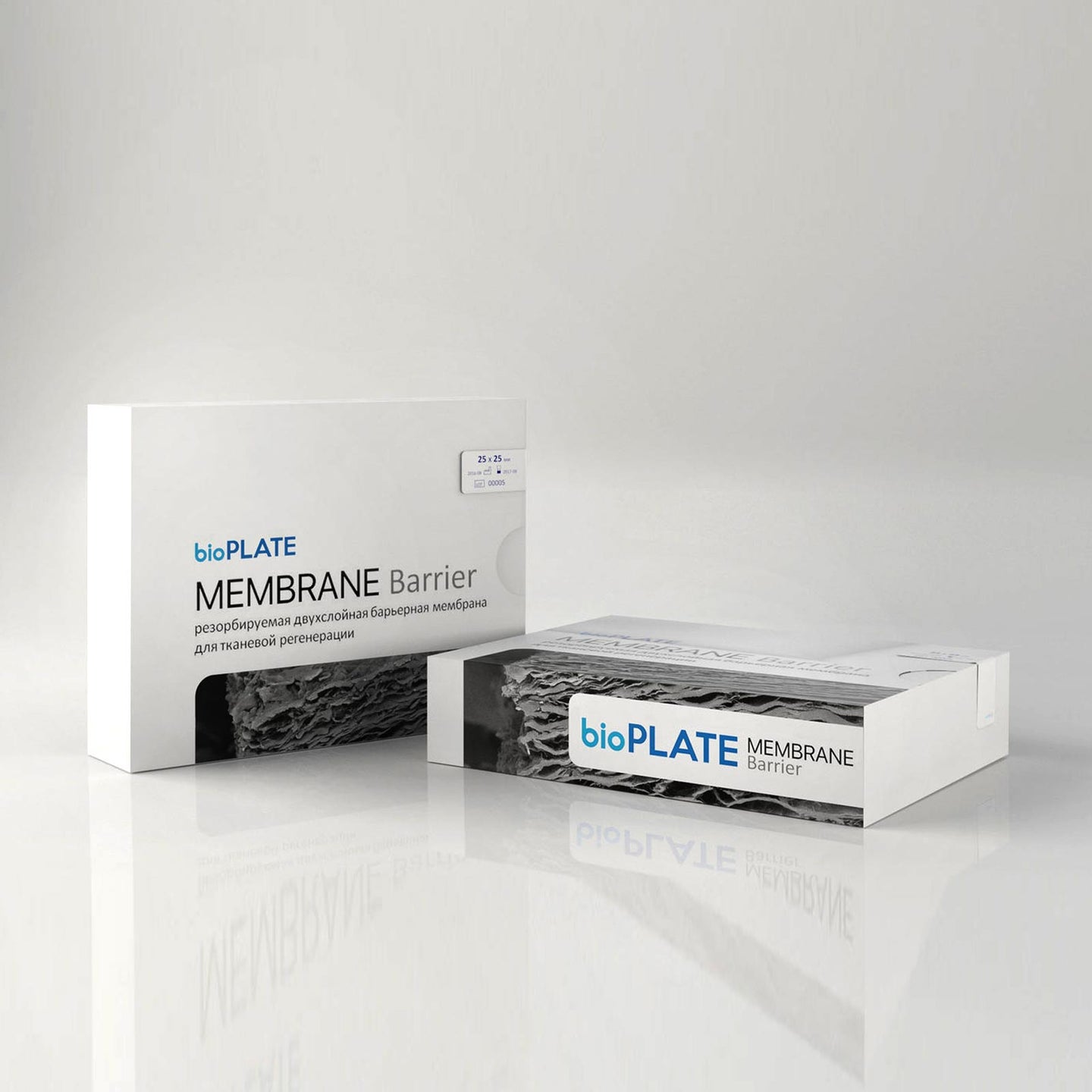 The membrane is made of natural, highly purified bovine pericardium. It has high strength and moderate tensile strength. It is irreplaceable for GTR and GBR therapy. It has two dissimilar surfaces – smooth and woolly. The high strength and elasticity of the membrane allows it to be fixed in the place of implantation without damage to the structure. Creates a barrier after grafting osteoplastic material and prevents the migration of soft tissues. Controlled and standardized manufacturing technology guarantees biological compatibility, no immune response, and stable clinical effectiveness with predictable results. The bioPLATE Barrier membrane is bioresorbable, which allows to avoid surgery to remove it, and, consequently, additional trauma to the patient.